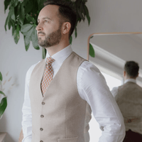 Un costume de style bohème est une solution moins formelle, choisie pour les mariages qui ont lieu à l'extérieur ou dans un endroit rustique. Ce type de tenue nous laisse beaucoup de liberté en termes de personnalisation et de sélection des tissus.